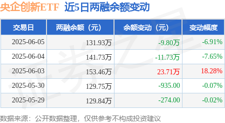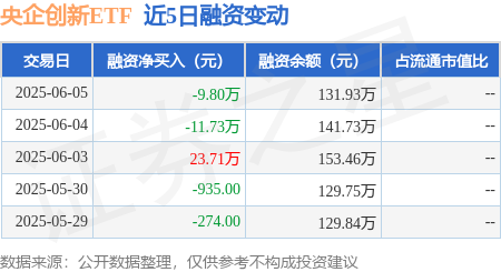 - 2025-06-25央企创新ETF:6月5日融资买入5.75万元,融资融券余额131.93万元